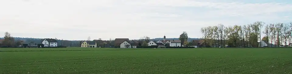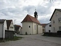 - Die katholische Ortskirche mit dem Patrozinium „Unbefleckte Empfängnis Mariens“ ist eine Filiale der Pfarrei Greding, Dekanat Roth-Schwabach, Diözese Eichstätt; die Filialkirchenstiftung wurde 1923 errichtet.[20] 110 Katholiken wohnten 2007 im Ort. 1846 wurde in der Dorfmitte eine Kapelle errichtet, die 1923 durch den Anbau eines Langhauses eine Erweiterung auf 8 × 4 Meter erfuhr.[21] In den sechseckigen Dachreiter mit Kuppel wurden damals zwei Glocken installiert. Renovierungen fanden 1933 und 2009 statt. Das Deckengemälde aus 1933 stammt von Josef Wittmann, München; es zeigt die Begegnung Marias mit Elisabeth. Der zweisäulige Altar ist eine „gute Barockschöpfung des späten 17. Jahrhunderts“ (Mader, Kunstdenkmäler, S. 199).