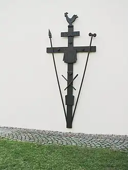 - Die Mariahilf-Kapelle in der Marienstraße 1 wurde wohl im 17. Jahrhundert erbaut. Nachdem sie eingefallen war, wurde sie 1748 mit Dachreiter und Spitzhelm über dem Chor wieder aufgebaut. Für 1753 wird berichtet, dass das Marienbild als „wundertätig“ besucht wird. Gemäß einer Legende soll das Bild eine Wendung der Augen, der Hände und des Zepters gezeigt haben.[22] Der Barock-Altar stammt aus dem späten 17. Jahrhundert.[23]