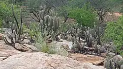 Der bevorzugte Lebensraum des Kaktussittichs ist die „Caatinga“ genannte, trockene Dornsavanne. Ferner werden auch noch wasserärmere, meist durch Überweidung entstandene Halbwüsten sowie Teile der etwas feuchteren, laubwechselnden Cerrado-Savannen besiedelt. Dabei sind sie in der Regel in Paaren anzutreffen, bilden außerhalb der Brutzeit aber auch gelegentlich Schwärme aus bis zu zwanzig Vögeln, vor allem in der Nähe ergiebiger Nahrungsquellen. Die Nahrung des Kaktussittichs besteht überwiegend aus Kaktussamen, Früchten, Nüssen und Beeren. Außerdem fressen sie landwirtschaftlich angebaute Früchte wie Reis, Getreide und Trauben.[1] Über ein etwaiges Zugverhalten der Art ist nichts bekannt, zumindest kurze, lokale Migrationen als Reaktion auf Nahrungsknappheit werden aber als wahrscheinlich angenommen.[2]