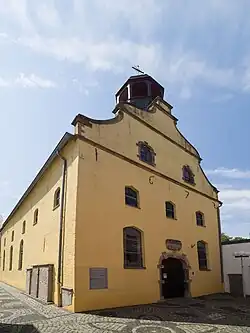 1873 errichtete die jüdische Gemeinde eine Synagoge, die 1938 im Novemberpogrom geschändet wurde. Die heutige Straßenbezeichnung Synagogenstraße und eine Gedenktafel vor Ort erinnern an das um 1960 abgerissene Gebäude.[14]