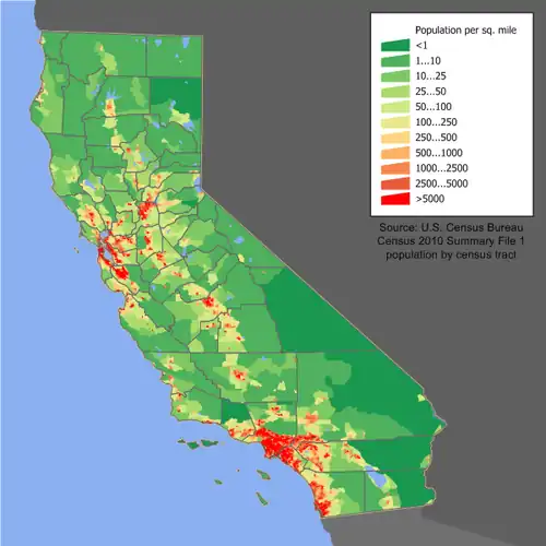 - ↑ California, Populations and People. US Census Bureau, abgerufen am 30. August 2025 (amerikanisches Englisch).