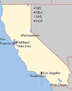In Kalifornien liegen acht der 50 größten Städte im Land. Los Angeles ist die zweitgrößte Stadt in den Vereinigten Staaten mit 3.792.621 Einwohnern (Census 2010), es folgen San Diego (8.), San José (10.), San Francisco (14.), Fresno (35.), Long Beach (36.), Sacramento (37.) und Oakland (45.).