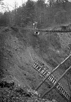 Produktionsgebäude der Firma Gläser im Einbruchskrater von 1930