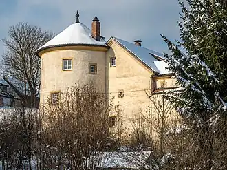 Baudenkmäler sind das Hauptgebäude sowie zwei runde Ecktürme der Burg Wadendorf.