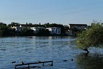 Nur die Nord-, West- und Süduferbereiche sind mit Wegen erschlossen und mit Wohngebäuden bebaut.