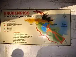 Wahrscheinlich schon vor 1400 wurde in Miltitz Kalkstein für Bau- und Düngezwecke abgebaut. 1571 wurde das Bergwerk erstmals urkundlich erwähnt. Anfangs geschah die Förderung nur oberirdisch im Blauen Bruch, mit Beginn des 19. Jahrhunderts begann auch der Abbau im Tiefbau. In den folgenden Jahrzehnten dehnte sich der Abbau des Kalksteins über 4 Sohlen bis in eine Tiefe von 60 Metern aus. In jener Zeit entstanden auch die eindrucksvollen Weitungsbaue.
