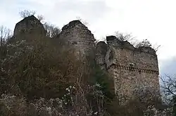 Um das Jahr 1150 entstanden oberhalb des heutigen Ortes die Burganlagen Stein, Kallenfels und Stock im Hahne. Die Burg oder Schloss Stein entstand auf der oberen Felskuppe. Das Schloss Kallenfels (Kaldenfels) lag 80 Fuß unter der Feste Stein. Weiter unterhalb entstand der Stock im Hahne, ein Wohnhaus mehr ein turmartiges Gebäude zur Verteidigung des unterhalb liegenden Weges als zur Ritterwohnung bestimmt.