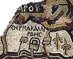Die Mosaiklandkarte von Madaba (6. Jahrhundert n. Chr.) bezeichnet den auch in der Spätantike noch bestehenden Kurort als „Therma Kallirhoës“. Man sieht eine kreisförmig gefasste Quelle, ein Gebäude mit Apsis, ein Wasserbecken mit Zufluss und zwei Palmen.[1]