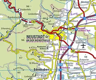 - ↑ Busliniennetzplan Neustadt Regionalverkehr ( vom 2. April 2015 im Internet Archive). (PDF; 63 kB) Palatinabus, VRN – Verkehrsverbund Rhein-Neckar. Abgerufen am 15. März 2015.