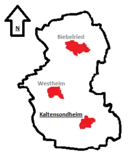 ![]() Lage von Kaltensondheim (fett) im Biebelrieder Gemeindegebiet