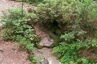 Die kleine idyllische Waldquelle, die in einer kleinen Schlucht zutage tritt, ist sagenumwoben. Hier soll die närrische Gusterti, geistern.[5][6]
