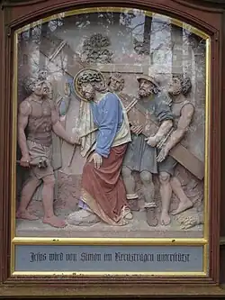 Ab 1890 entstanden die 14 Kreuzwegstationen nach Entwürfen des Architekten Johann Marggraff. Die Reliefs wurden von den Bildhauern Gebrüder Preckel aus Stadtamhof geschaffen und erneut von Pfefferle farblich gefasst. Papst Leo XIII. gewährte einen Ablass für die Absolvierung des Kreuzweges, der schließlich am 28. August 1892 vom Provinzial der Bayerischen Franziskanerprovinz, Petrus von Hötzl, geweiht wurde; von Hötzl wurde 1895 Bischof von Augsburg. Die Stationen kosteten insgesamt 7700 Mark, die von privaten Spendern übernommen wurden. Darunter waren Kaiserin Elisabeth von Österreich-Ungarn (Station XII) und Albert von Thurn und Taxis (Station XIII).[1]