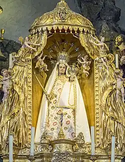 In die ursprünglich als Ölbergkapelle konzipierte Eingangskapelle ließ 1711 Fürst Paul I. das 1690 nach dem Vorbild von Maria Einsiedeln vom Eisenstädter Bildhauer Michael Felser († 1710) geschaffene Gnadenbild aus Großhöflein überführen und die Kapelle entsprechend umgestalten. Dort war es nach einem Brand als Einziges gerettet worden. Die Figur wurde neben dem eigentlichen Kalvarienberg im 18. Jahrhundert Hauptanziehungspunkt der Wallfahrten.[1]