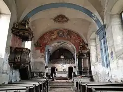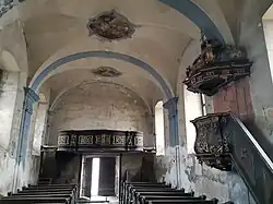 Im Kircheninneren gibt es ein dreijochiges Kreuzgratgewölbe, einen eingezogenen bemalten Triumphbogen, Rechteckfenster und einen kreuzgratgewölbten Chor. Die barocke Innenausstattung befindet sich großteils nicht mehr in der Kirche, letzte Reste sind in einem sehr schlechten Zustand. Einzelne Bemalungen sind an den Wänden noch vorhanden. Die namensgebende Ölberggruppe im Altarbereich ist nicht mehr zu sehen.