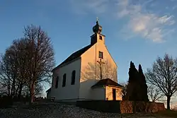 Der schlichte Kirchenbau des Vormärz lehnt sich weitgehend an den Barock an im Sinne einer Gegenbewegung gegen den Josephinismus. Der Saalbau mit einer Ostapsis unter einem Satteldach mit einem Dachreiter hat einen fast quadratischen Anbau am Chorhaupt. Die Westfassade zeigt eine breite Mittellisene mit dem darüber stehenden kleinen Dachreiter mit einem Zwiebelhelm, etwas später erfolgte ein Portalvorbau. Seitlich hat die Kirche Rundbogenfenster.