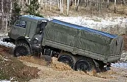 Mit großer Einzelbereifung, permanentem Allradantrieb und der Geländeuntersetzung ist das Fahrzeug sehr geländegängig. Optisch unterscheidet es sich vom schwereren KamAZ-53501 vor allem dadurch, dass letzterer einen guten halben Meter länger ist.[4]