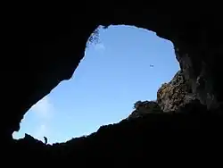 Der vordere Teil der Höhle hat eine Länge von etwa 100 Metern und fällt steil um 40 Meter ab und ist wegen der großen Öffnung hell. Am unteren Ende gibt es eine nur einen Meter breite Passage, die zu einer 10 Meter hohen dunklen Galerie führt. Am Ende erreicht man eine Halle mit einem kleinen Teich.