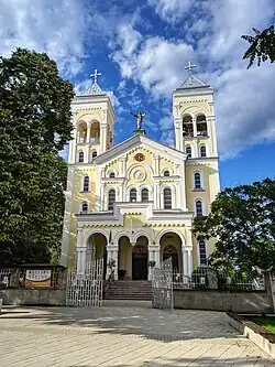 - Katholische Kirche »Hl. Franziskus von Assisi«, ul. Papa Joan Pawel II 1, Belosem (Католическа църква »Св. Франциск от Асизи«, ул. „Папа Йоан Павел ІІ“ № 1, с. Белозем).[22] Die Kirche ist eine neuromanische dreischiffige Kreuzbasilika mit zwei oktogonalen Glockentürmen. Baubeginn war 1930, die Weihe konnte am 13. September 1931 gefeiert werden.[27]