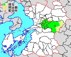 Amakusa-gun: Reihoku | Ashikita-gun: Ashikita | Tsunagi | Aso-gun: Minamiaso | Minamioguni | Nishihara | Oguni | Takamori | Ubuyama | : Kashima | Kosa | Mashiki | Mifune | Yamato | Kikuchi-gun: Kikuyō | Ōzu | Kuma-gun: Asagiri | Itsuki | Kuma | Mizukami | Nishiki | Sagara | Taragi | Yamae | Yunomae | Shimomashiki-gun: Misato | Tamana-gun: Gyokutō | Nagasu | Nagomi | Nankan | Yatsushiro-gun: Hikawa