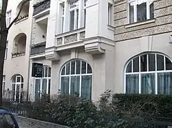 - ↑ Nach alten Adressbüchern befand sich im Erdgeschoss zunächst ein Restaurant, dann eine Schule für Gymnastik und Tanz, später eine Werkstatt für Kühlschränke, danach für Getränkeautomaten.