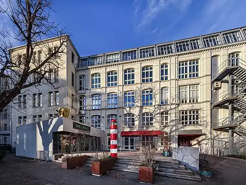 Der Trakt Baumgartenstrasse ist ein langgestrecktes Industriegebäude mit vier Geschossen. Das weitere Dachgeschoss zeigt im Süden grosszügige Fensterflächen. Das Bauwerk ist in hellen Ziegeln gemauert, die Fenster haben meist Stichbögen. Der winklig anschliessende Westflügel ist ein Betonskelettbau mit fünf Geschossen.