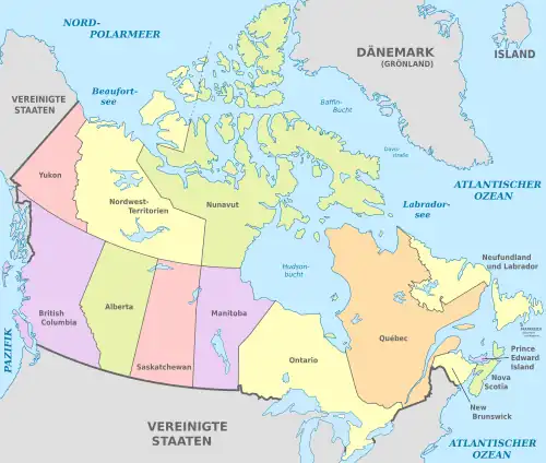 Kanada (englisch und französisch Canada) ist ein föderaler Staat in Nordamerika, der zwischen dem Atlantik im Osten und dem Pazifik im Westen liegt und nordwärts bis zum Arktischen Ozean reicht. Bundeshauptstadt ist Ottawa, die bevölkerungsreichste Stadt ist Toronto.