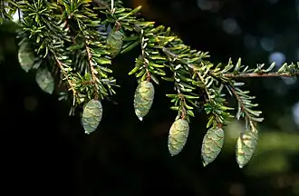 Kanadische Hemlocktanne mit Zapfen -