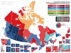 - ↑ Map of official results for the 2021 federal election. In: electionsanddemocracy.ca/. Abgerufen am 19. April 2025 (englisch).