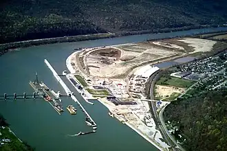 ![]() Schleuse und Stauwehr in Winfield, WV, 50 km oberhalb der Mündung | ||