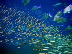 In einem Kandu herrscht durch die Gezeiten meist eine starke Strömung, da er den Wasseraustausch mit dem Inneren eines Atolls ermöglicht. Diese Strömung trägt das im Atoll gebildete Plankton in das offene Meer und zieht so große Fische wie Makrelen-Schwärme, Adlerrochen, Mantarochen oder verschiedene Haiarten bis hin zum Walhai an.[2][3][4]