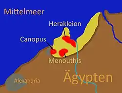 Seit 1996 wird das Gebiet vor der Küste vor Abukir[3] von dem französischen Unterwasserarchäologen Franck Goddio[4][5] untersucht. Es wird vermutet, dass weitere Teile der Stadt Kanopus etwa zwei Kilometer östlich des heutigen Hafens der Stadt versunken im Meer liegen.[6]