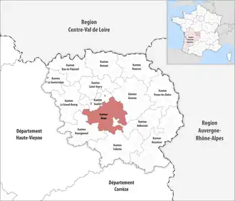 ![]() Lage des Kantons Ahun im Département Creuse | |