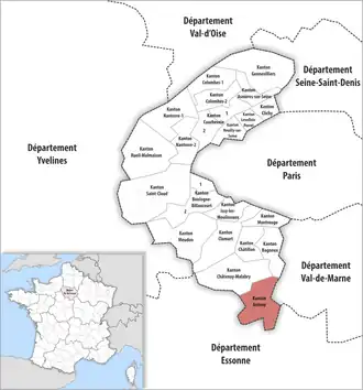 ![]() Lage des Kantons Antony im Département Hauts-de-Seine | |