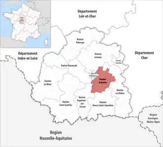 ![]() Lage des Kantons Ardentes im Département Indre | |