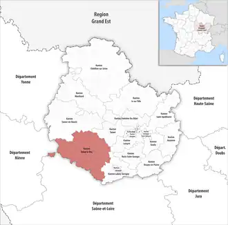 ![]() Lage des Kantons Arnay-le-Duc im Département Côte-d’Or | |