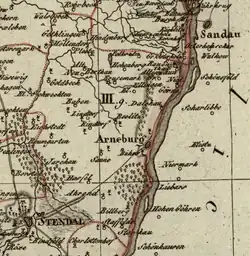 - Arneburg, Flecken Kantonshauptort (chef-lieu) mit dem Dorf Beelitz (Belitz) und der Meierei Bürs (Bührs)