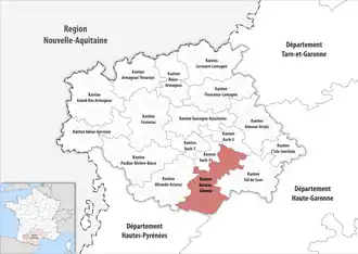 ![]() Lage des Kantons Astarac-Gimone im Département Gers | |