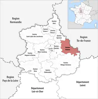 ![]() Lage des Kantons Auneau im Département Eure-et-Loir | |