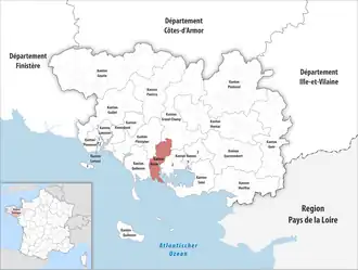 ![]() Lage des Kantons Auray im Département Morbihan | |