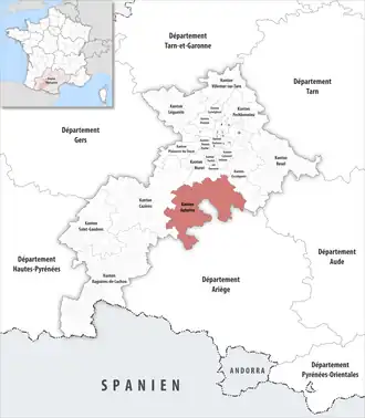 ![]() Lage des Kantons Auterive im Département Haute-Garonne | |
