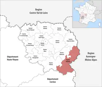 ![]() Lage des Kantons Auzances im Département Creuse | |