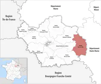 ![]() Lage des Kantons Bar-sur-Aube im Département Aube | |