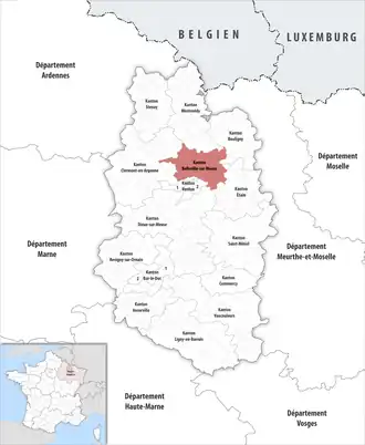 ![]() Lage des Kantons Belleville-sur-Meuse im Département Meuse | |
