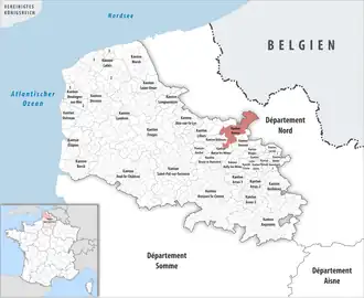 ![]() Lage des Kantons Beuvry im Département Pas-de-Calais | |