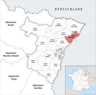 ![]() Lage des Kantons Bischwiller im Département Bas-Rhin | |