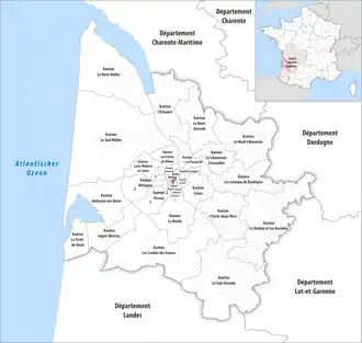![]() Lage des Kantons Bordeaux-1 im Département Gironde | |