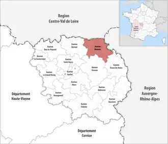 ![]() Lage des Kantons Boussac im Département Creuse | |