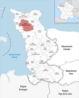 ![]() Lage des Kantons Bricquebec-en-Cotentin im Département Manche | |
