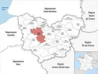 Bis zur Neuordnung bestand der Kanton Brionne aus den 23 Gemeinden Aclou, Le Bec-Hellouin, Berthouville, Boisney, Bosrobert, Brétigny, Brionne, Calleville, Franqueville, Harcourt, La Haye-de-Calleville, Hecmanville, Livet-sur-Authou, Malleville-sur-le-Bec, Morsan, La Neuville-du-Bosc, Neuville-sur-Authou, Notre-Dame-d’Épine, Saint-Cyr-de-Salerne, Saint-Éloi-de-Fourques, Saint-Paul-de-Fourques, Saint-Pierre-de-Salerne und Saint-Victor-d’Épine. Sein Zuschnitt entsprach einer Fläche von 160,51 km2.