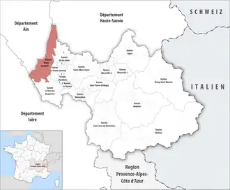 ![]() Lage des Kantons Bugey savoyard im Département Savoie | |